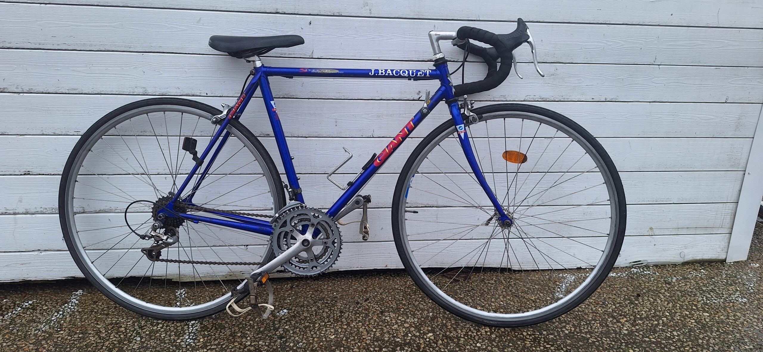 Vélo de course Giant. Roue de 700. 21 vitesses. Passage des pignons indéxés. Manettes au cadre.